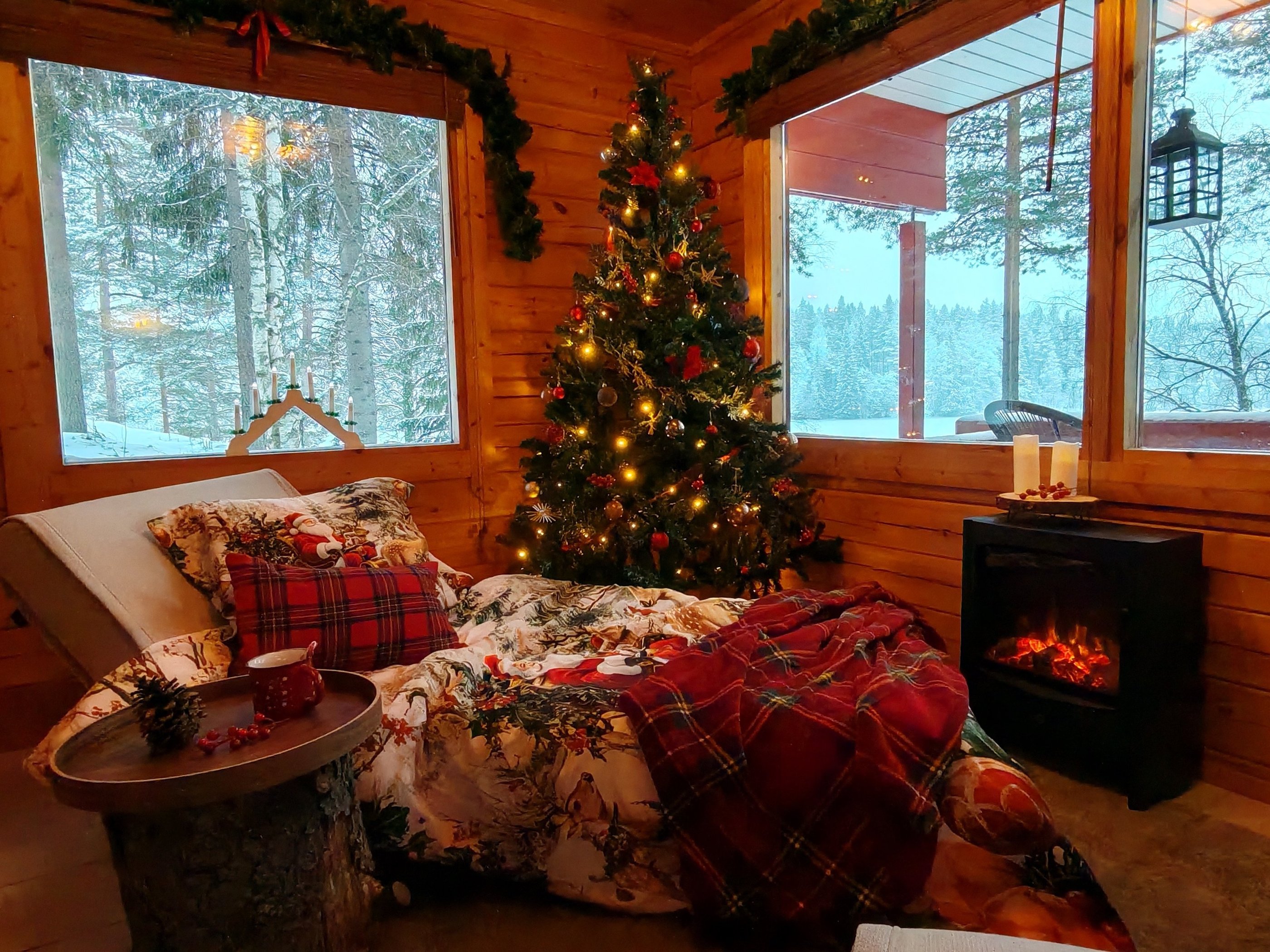 Gaze at the boreal forest and the blue river from the comfort of your motorised beds in your Nature chalet.