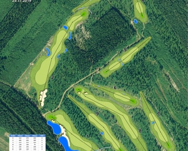 Amenities: Includes a driving range (operated with 2€ coins), a practice bunker, a putting green, and a golf simulator for indoor play.
