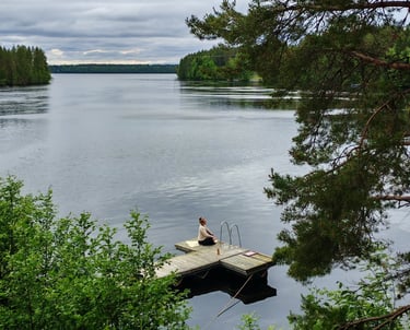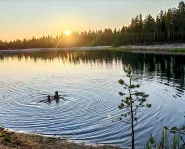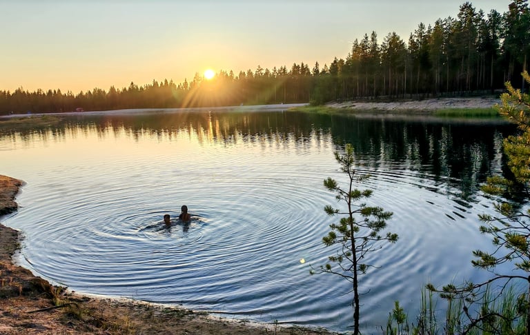 There are several different beaches along Rokua geopark - on the rivers and lakes. On your way with a car or a bike you can always stop for a refreshing moment in the water. At the very end (coming from our Holiday Village) you will find yourself at Manamansalo, the largest island in the Oulujärvi, the fifth largest lake in Finland, a favourite among locals to go bathe and check the sunsets.