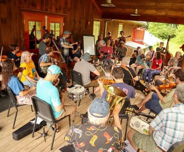 Local musicians and visitors come together each month to play folk music or whatever the group feels inspired to play together. The event is free and open to the public, welcoming musicians with acoustic instruments as well as those who simply wish to listen and enjoy the atmosphere.