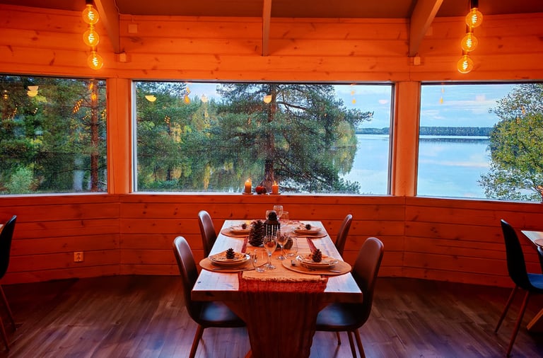 … viettämässä hetkeä herkullisen aterian äärellä rakkaan ihmisen tai ystävien kanssa, hymyn ja naurun sulautuessa ympäröivän luonnon rauhaan ja sisätilojen lämpimään tunnelmaan.