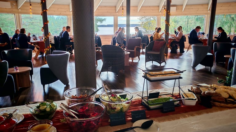 Sekä aamiainen että lounas 70 € / henkilö – kokonaishinta