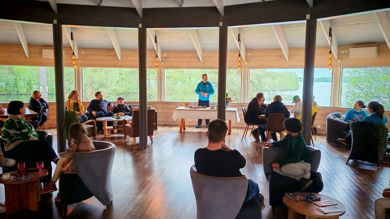 Puolipäivän työpaja: 08:30–12:30 — Aamiainen, aloitus, käytännön sessio, lyhyt inspiroiva kävely, lounas, yhteenveto