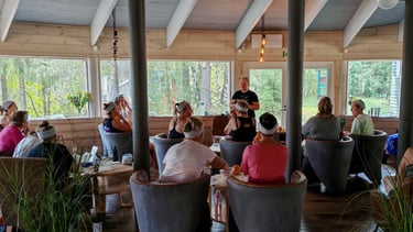 Culinary, handcrafts, harvesting or paddling in the river workshops as the primary activity, with optional short inspiration Nature walks