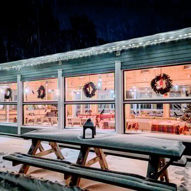 An exquisite panoramic venue with views to the forest from every window, all magically decorated with Christmas theme, just like if you were on a Christmas movie.