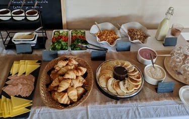 A continental buffet that includes homemade pancakes and melting chocolate for a sweet start of the day