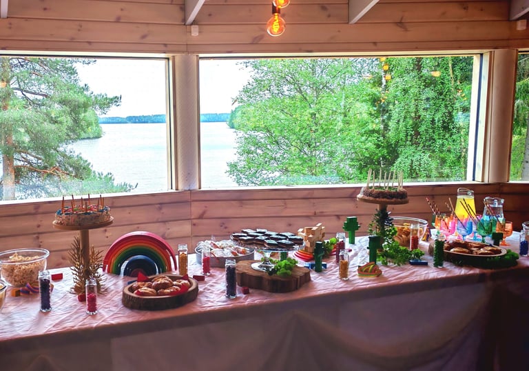 Light multiple, or always available, coffee breaks served inside or at the outdoors firecamp. A warm coffee and Tikkupulla in Nature can really make a different setting amidst your celebration.