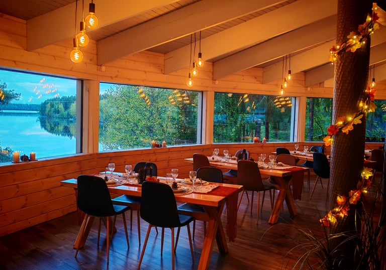 The privileged location within Rokua UNESCO Nature, the majestic panoramic venue, the unique and sustainable menus and the premium seasonal decorations,