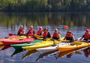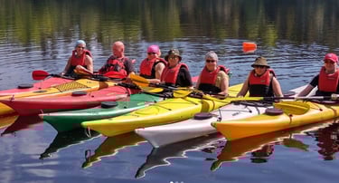 Kayaking/canoeing/SUP, Harvesting guided walk and workshop, River floating suits — choose one main activity plus a short Nature walk.