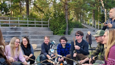 08:30–17:00 — breakfast → short, light activity (5–15 minutes) at the start of the day to boost focus and team spirit → main activity (LEGO challenge or paddling) → hot lunch → Nature walk with campfire → closing circle.
